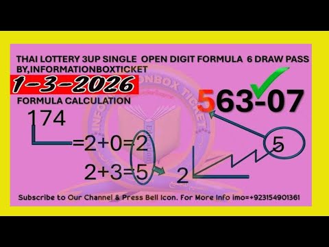 THAI LOTTERY 3UP SINGLE OPEN DIGIT FORMULA 6 DRAW PASS By, InformationBoxTicket || 1-3-2026